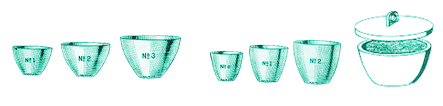 เบ้าเคลือบมีอยู่ 2 ขนาด คือแบบทรงเตี้ยและแบบทรงสูง และมีขนาดต่างๆ กันขึ้นอยู่กับความจุ