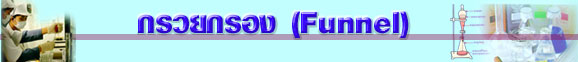 | กรวยกรองเป็นอุปกรณ์ที่ใช้คู่กับกระดาษกรอง ( Filter Paper) ในการแยกของแข็งออกจากของเหลวและมักจะใช้สำหรับสวมบิวเรทเมื่อจะเทสารละลายลงในบิวเรท กรวยกรองมีมุมเกือบๆ 60 องศา และมีทั้งแบบก้านสั้นและก้านยาว กรวยก้านยาวจะกรองได้เร็วกว่ากรวยก้านสั้น ขนาดของกรวยกรองจะใหญ่หรือว่าเล็กขึ้นอยู่กับความยาวของเส้นผ่าศูนย์กลาง (วัดขอบนอก)