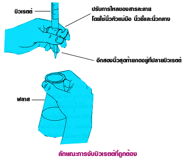 เมื่อจะใส่สารละลายในบิวเรตต์ จะต้องล้างบิวด้วยสารละลายนั้นก่อน