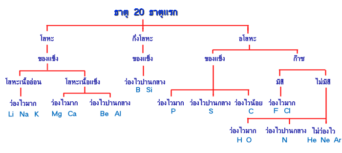 การจัดกลุ่มธาตุ 20 ธาตุแรกโดยใช้เกณฑ์ย่อย