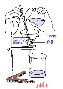 5. นำผลึกที่ได้มากรองโดยใช้กระดาษกรองและกรวยแก้ว และล้างตะกอนด้วยสารละลายเอทานอล ก็จะได้