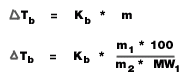 Kb = ค่าคงที่ของการเพิ่มขึ้นของจุดเดือดของสารละลาย (องศาเซลเซียส/mol/kg)