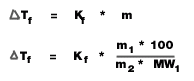 Kf = ค่าคงที่ของการลดลงของจุดเยือกแข็งของสารละลาย (องศาเซลเซียส/mol/kg)