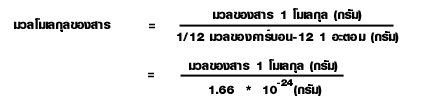 ในกรณีที่ไม่ทราบชนิดและจำนวนอะตอมของธาตุที่เป็นองค์ประกอบในโมเลกุลของสาร แต่ทราบมวลเป็นกรัมของสาร 1 โมเลกุล จะหามวลโมเลกุลของสารได้จากความสัมพันธ์ดังนี้
