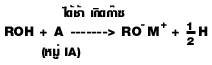 | ทำให้เกิดเอสเทอร์ | (ต้องมีตัวเร่งปฏิกิริยา H2SO4(conc)) 11.ทำปฏิกิริยากับ | กรดอินทรีย์ ทำให้เกิดเอสเทอร์