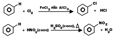 คายพลังงาน ไม่ละลายน้ำเป็นโมเลกุลไม่มีขั้ว ไม่มีสี มีกลิ่นเฉพาะ เกิดปฏิกิริยาแทนที่ ดังนี้