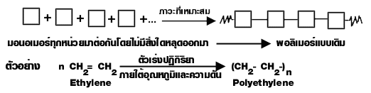 ก. โฮมอลิเมอร์ เป็นพอลิเมอร์ที่ประกอบด้วยมอนอเมอร์ชนิดเดียวกัน เช่น แป้ง พอลิเอทิลีน PVC