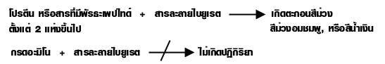 สารละลายไบยูเรต เป็นสารละลายผสมระหว่าง CuSO4 กับ NaOH เป็นสีฟ้า