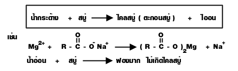 เนื่องจากสบู่จะเกิดตะกอนไอออนในน้ำกระด้างทำให้เกิดการสิ้นเปลืองในการใช้สบู่ จึงได้มี