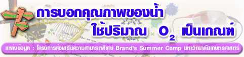 หมายเหตุ DO ในน้ำ > หรือเท่ากับ 3 mg/l เป็นน้ำดี ต่ำกว่า 3 mg/l เป็นน้ำเสีย