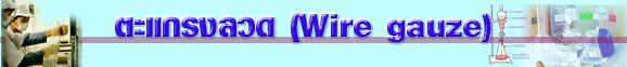 | ตะแกรงลวดมีทั้งที่ทำจากลวดเหล็กและที่ทำด้วยลวด nichrome หรือ chromel ซึ่งไม่เกิดสนิมและใช้ได้ระยะเวลานานกว่า ตะแกรงลวดเป็นรูปสี่เหลี่ยมจตุรัสและมีใยหิน (asbestos) คลุมเป็นวงกลมที่ตากึ่งกลางตะแกรง ตะแกรงลวดใช้สำหรับตั้งบีกเกอร์ ขวดปริมาตร และอื่นๆ ที่นำมาต้มสารละลายด้วยเปลวไฟ